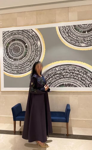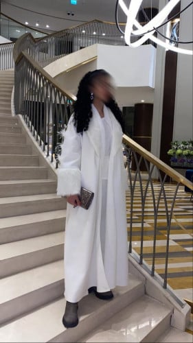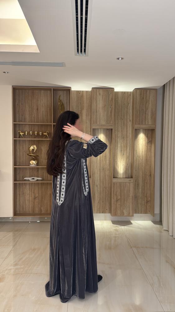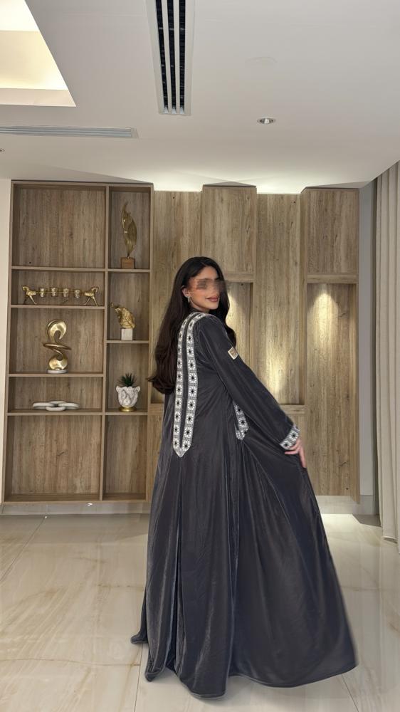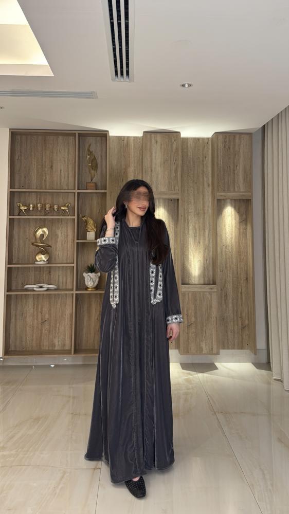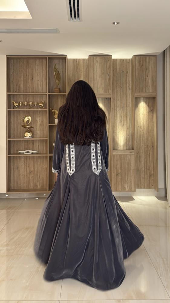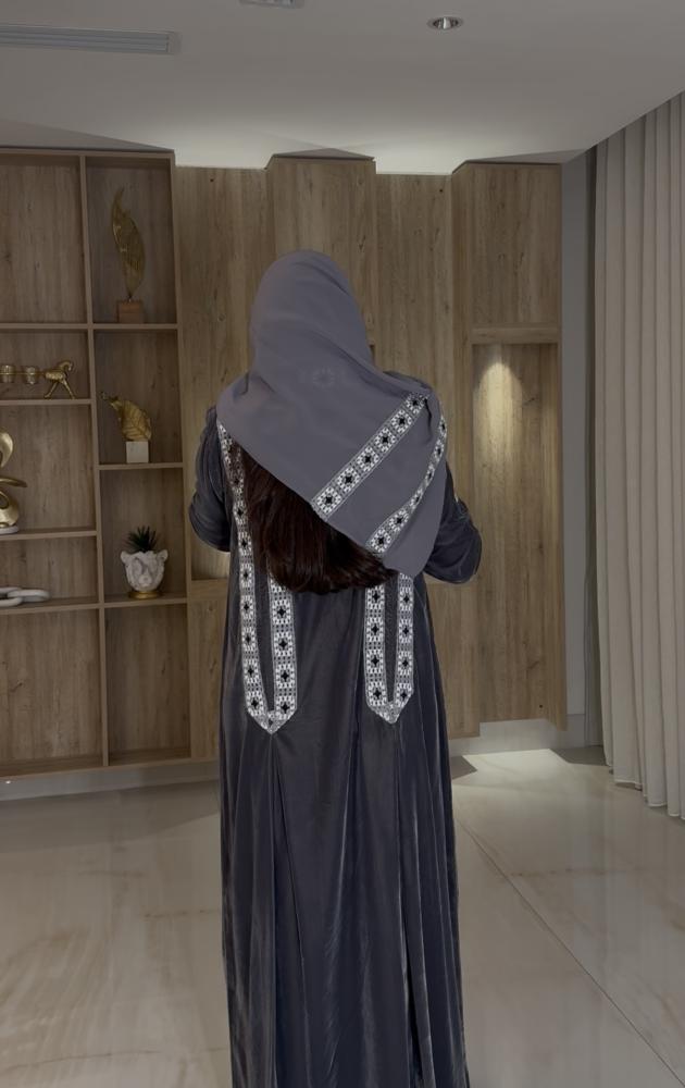 عبايـة كلوش بقمـاش مخمـل كوري فاخر و كلفة كروشية