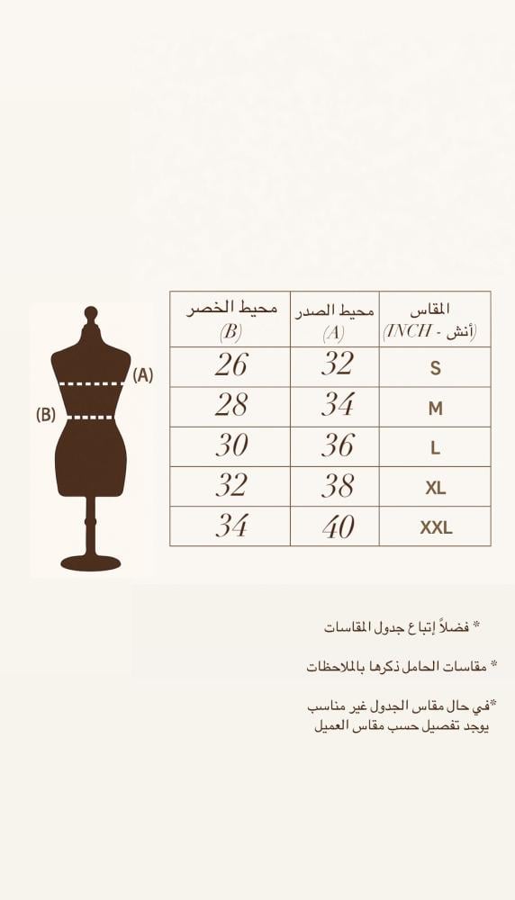 جـدول المقاسـات مع صـور المنتـج