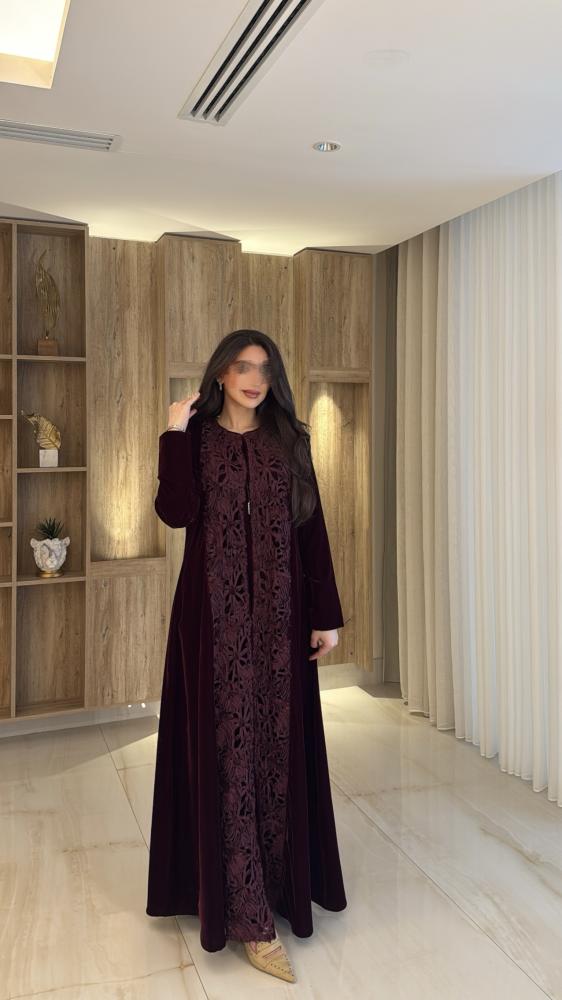 عبايـة نص كلوش بقماش مخمـل كوري فاخر و جوبير فرنسي وردات ( غير مبطن) في حال الرغبة بتبطين الجوبير الكتابه بالملاحظة
