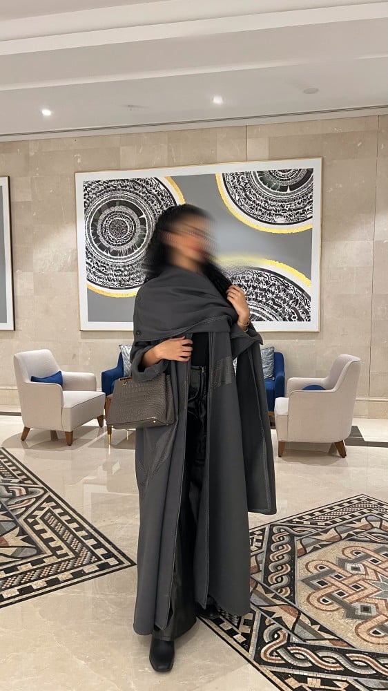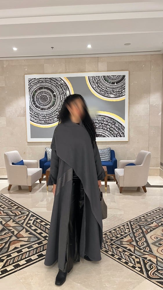 عبايـة جـوخ إيطالي مع جلـد سنيـك ربـع كلوش ، مع سكارف متحـرك