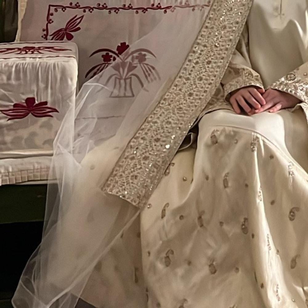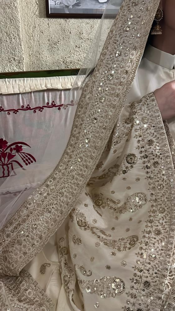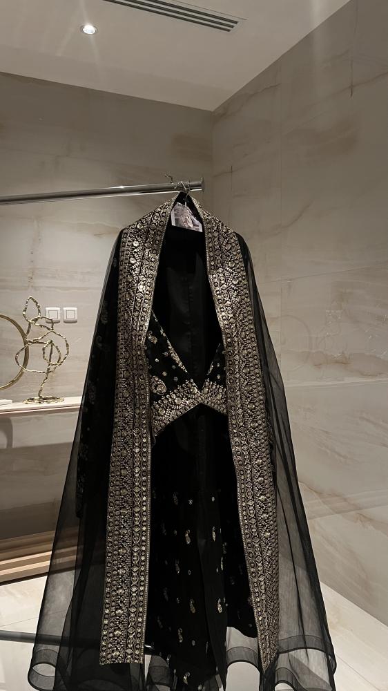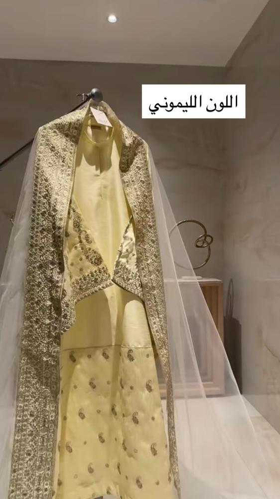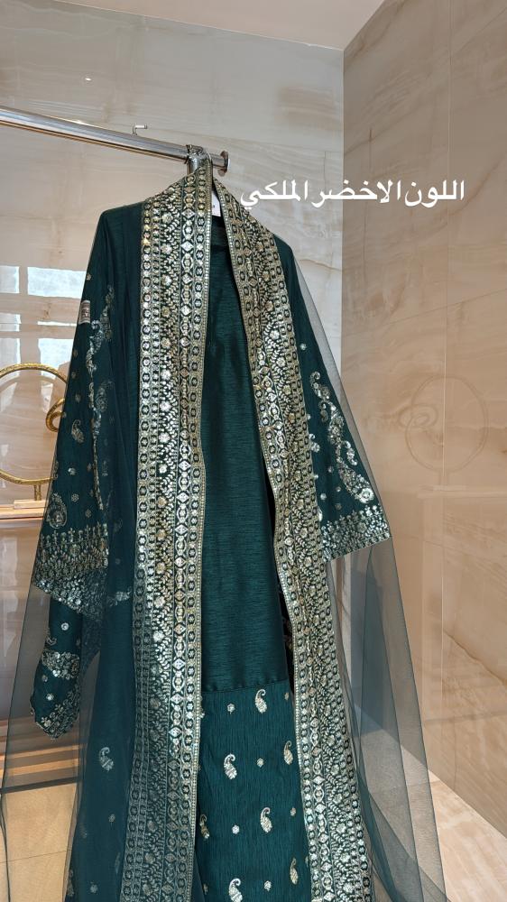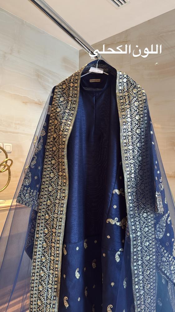 قطعـة مميـزة خامتها تفتة ايطالي ملكي عبارة عن زيّ مطرز تطريز يدوي من الاكمام والاسفل وطرحة تل مطرزة