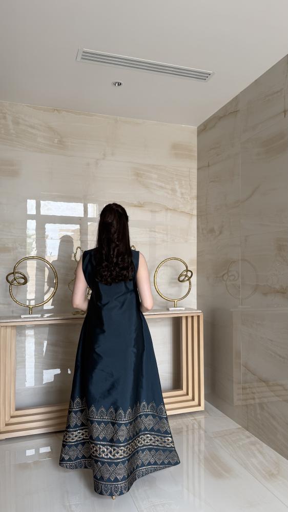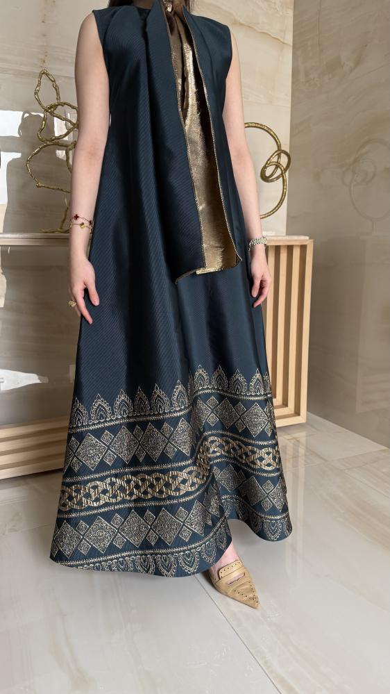 فستـان كلـوش مصمم بطريقـة مميزة { قمـاش تفتـة فرنسي مطرز }