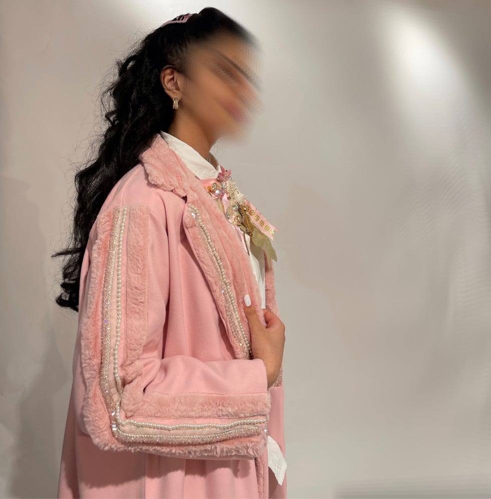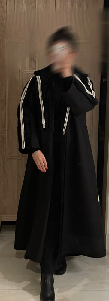 عباية جوخ وفرو مشغول لولو وكرستال هاند ميد