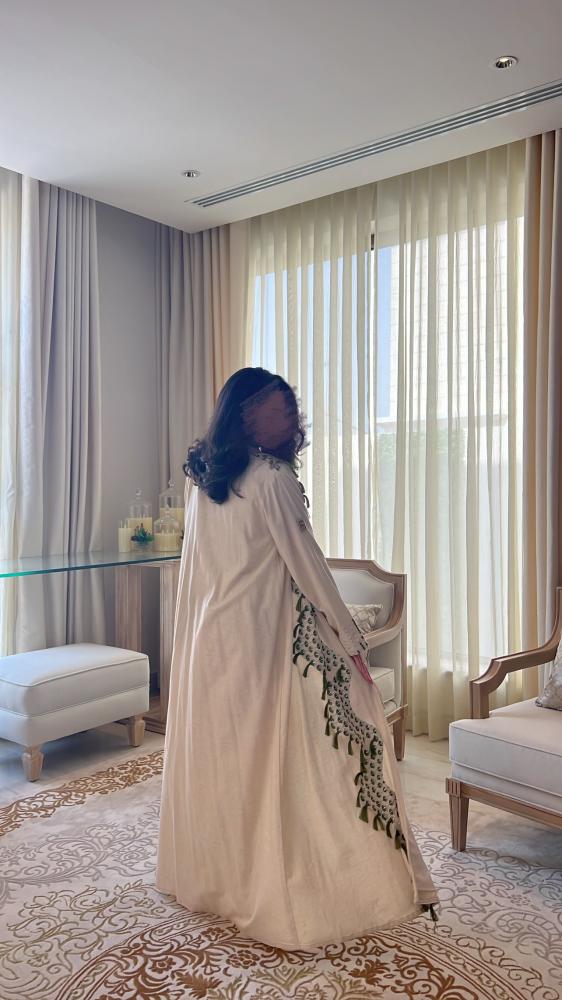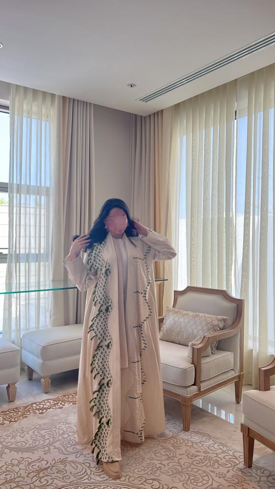 عباية كلوش لينن طبيعي مطرز تطريز فاخر