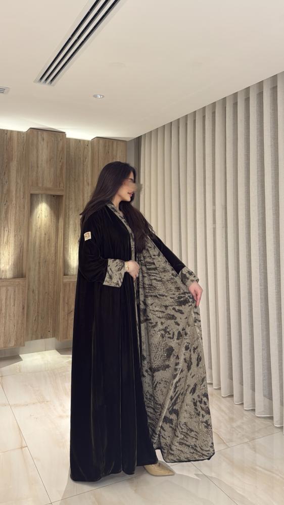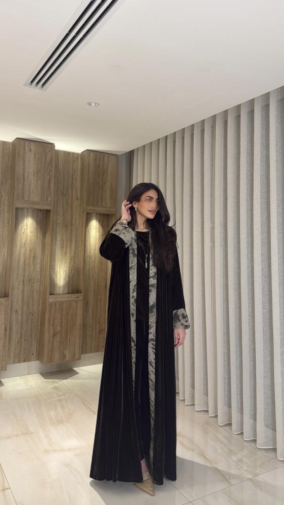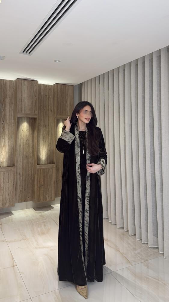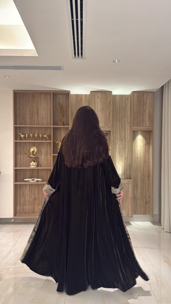 عبـاية مخمـل كوري فاخر مبطـن كامل مشجر قصـة العبايـة كلـوش