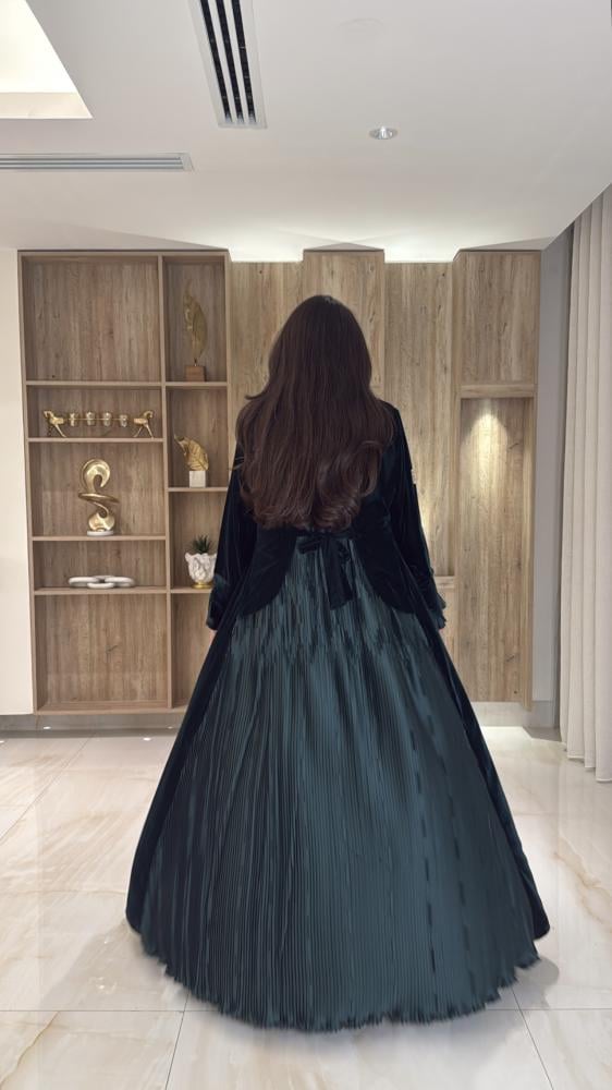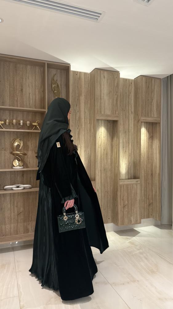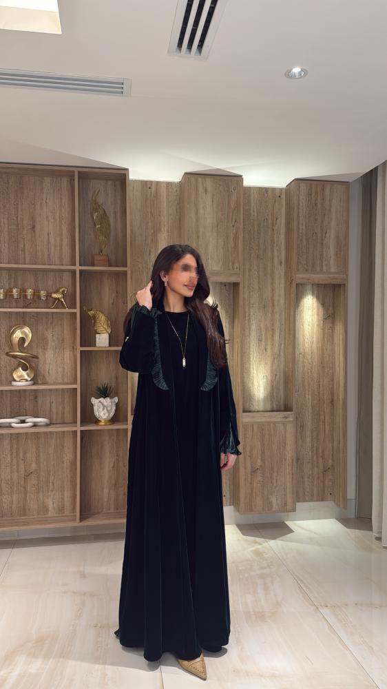 عبايـة قصة كلـوش بقماش مخمل كوري فاخر ومن الخلف بلاسيه