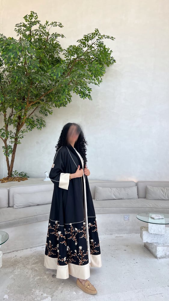 عبايـة كلوش لينن مع قماش مطرز يدوي